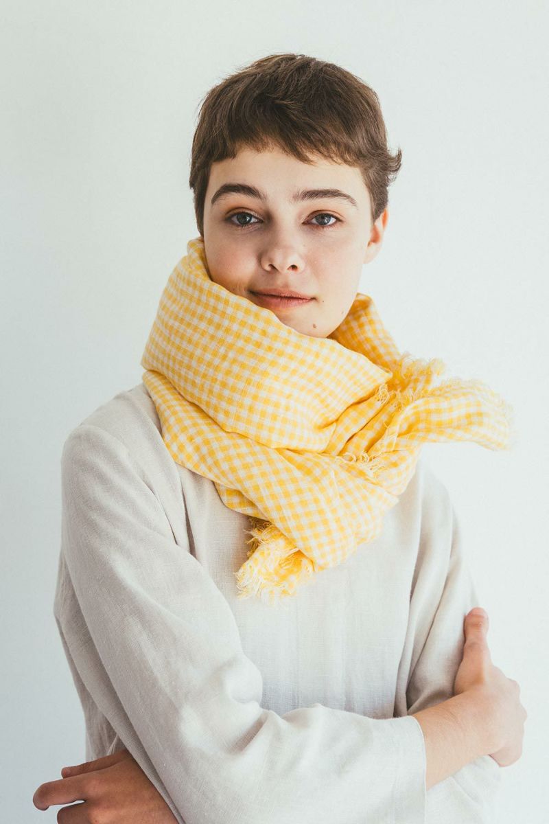いろいろに活用できるリネン生地で仕立てたストールは、ギフトにもおすすめ。