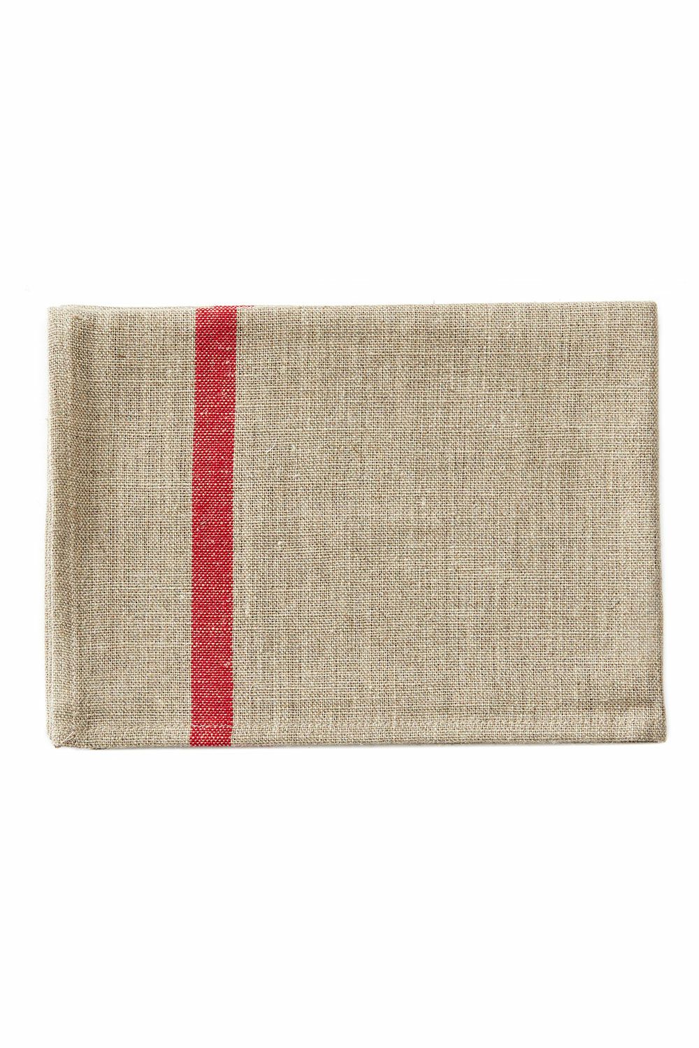 リネン ライン入りキッチンクロス 厚地 ナチュラル レッドライン