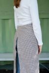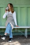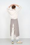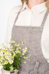 ポケットは中央に。胸当ての部分を内側におりこんで、サロンエプロン風にも使えます。