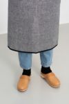パイピングと紐のカラーがアクセントになったパイピングエプロン。
