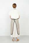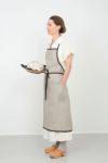 パイピングと紐のカラーがアクセントになったパイピングエプロン。