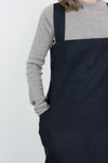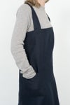 LINEN SQUARE CROSS APRON NAVY