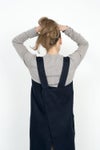ジャンバースカートの様なシルエットのスクエアクロスエプロン。