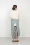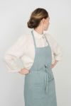 ポケットは中央に。胸当ての部分を内側におりこんで、サロンエプロン風にも使えます。