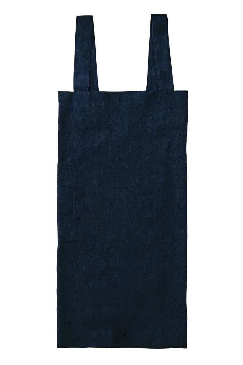 LINEN SQUARE CROSS APRON NAVY
