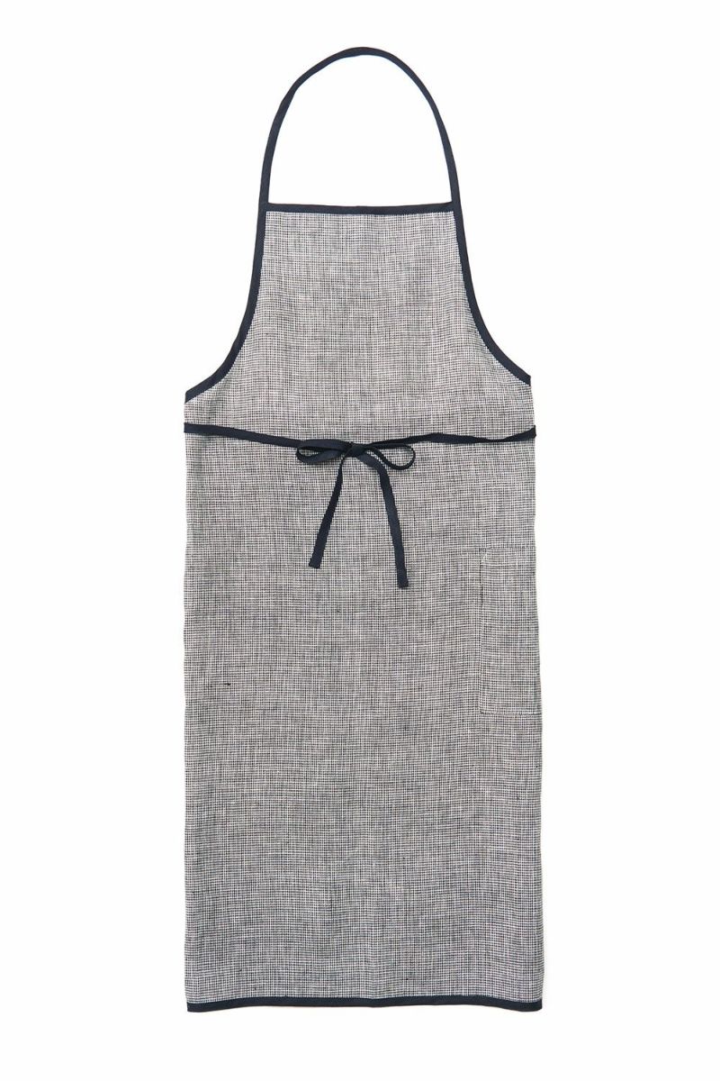 LINEN PIPING APRON TOOTHHOUND CHECK