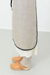 パイピングと紐のカラーがアクセントになったパイピングエプロン。
