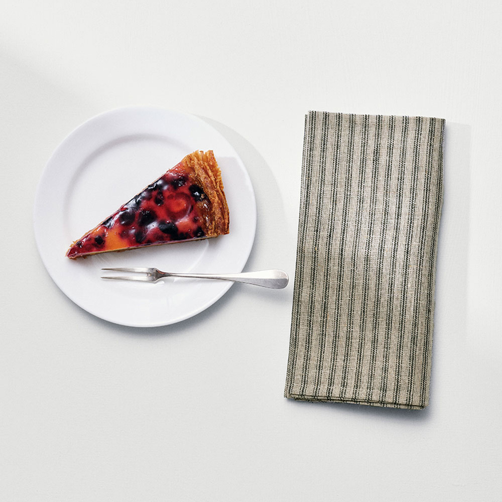 食事の際に、口や手を拭くためとしてはもちろん、ナプキンの上にカトラリーをのせてセッティングすれば、いつもの食卓も華やかに、来客時にも役立ちます。