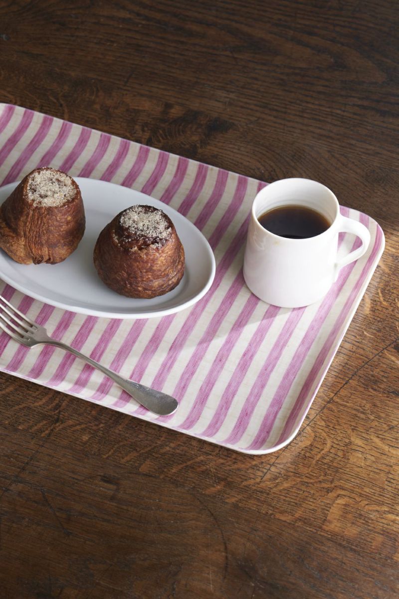 リネンの生地を樹脂コーティングした、色柄豊富なリネントレー。