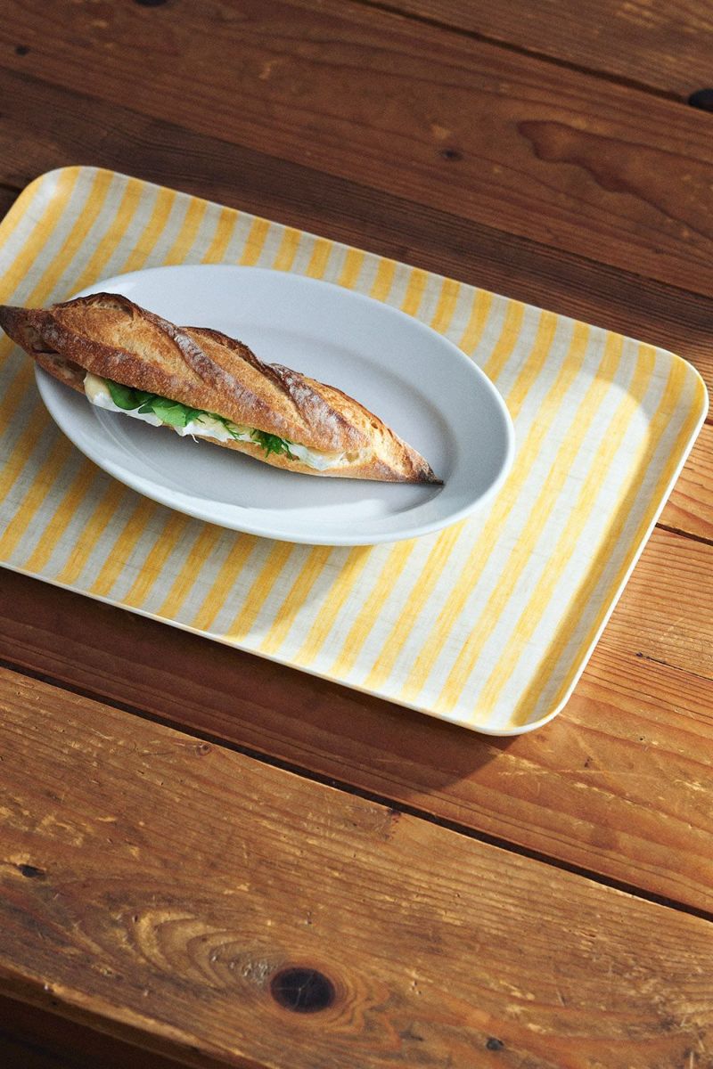 M サイズは、ワンプレートとグラス、カトラリーを置いて。一人分のランチやおやつタイムにちょうど良いサイズ感。