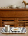 M サイズは、ワンプレートとグラス、カトラリーを置いて。一人分のランチやおやつタイムにちょうど良いサイズ感。