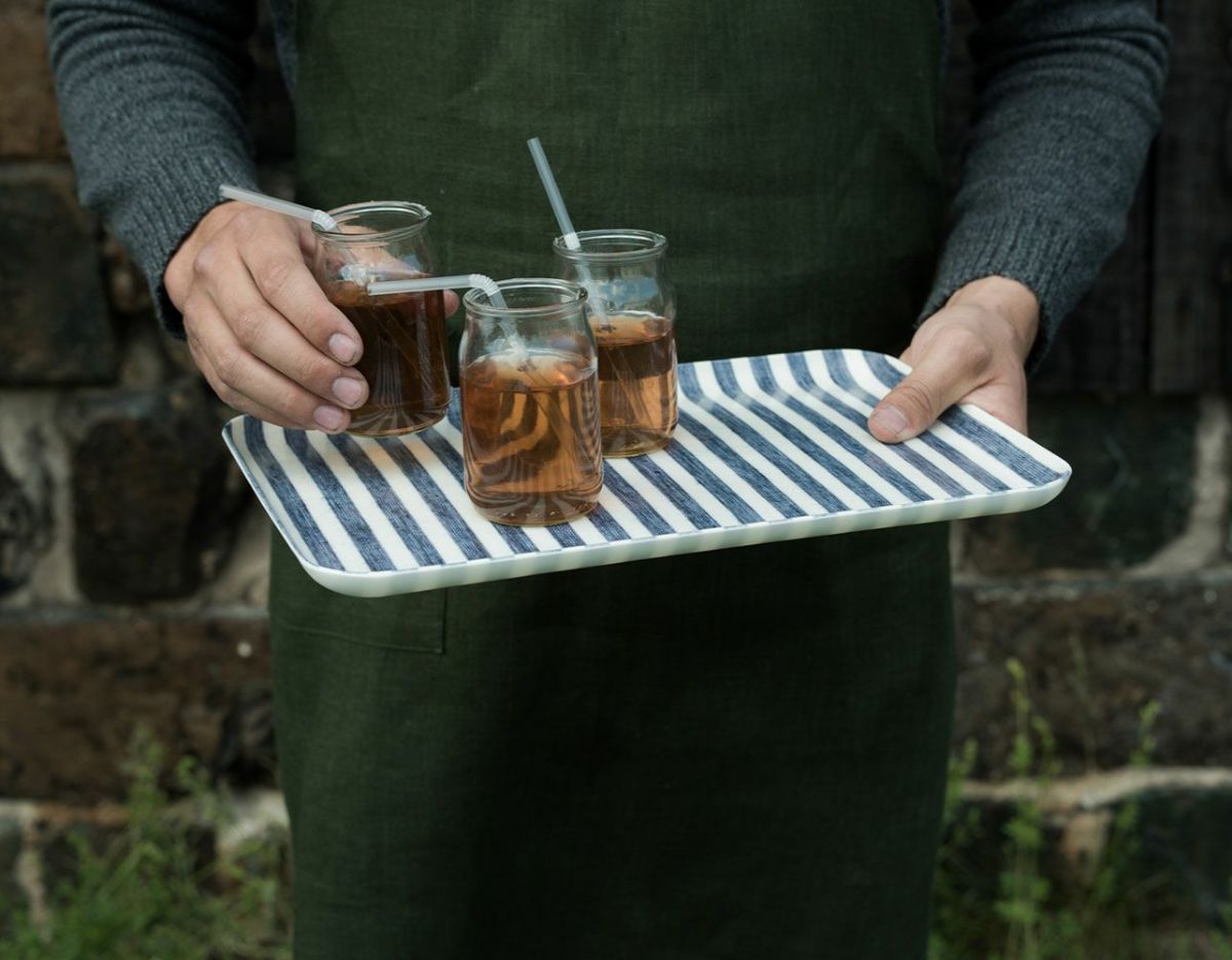 リネン トレー S ブルーホワイトストライプ