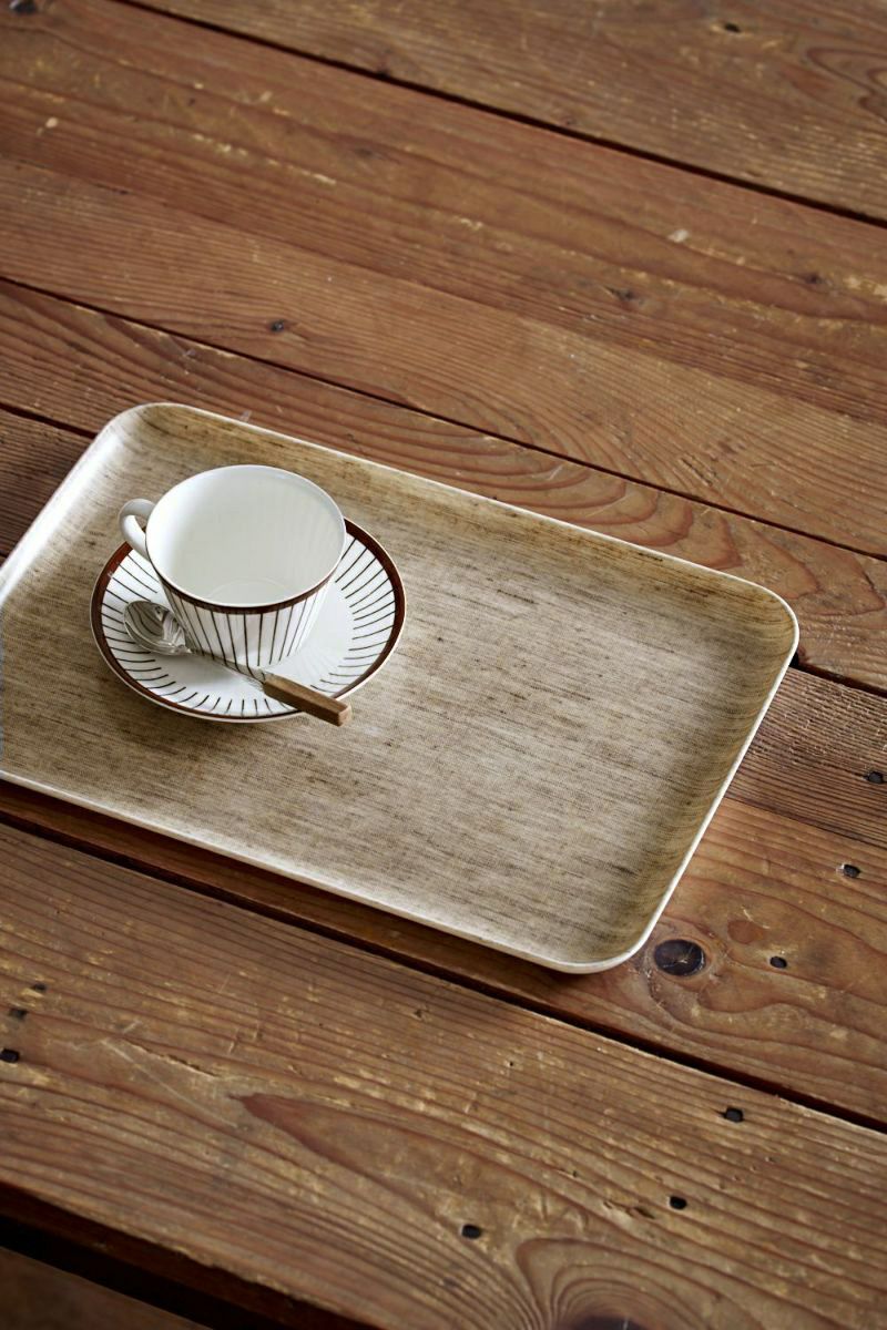 リネンの生地を樹脂コーティングした、色柄豊富なリネントレー。