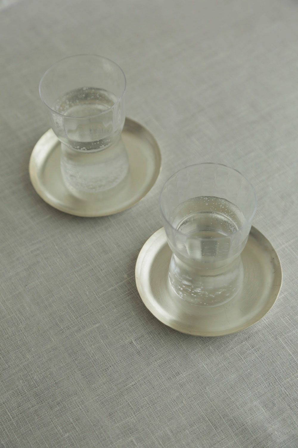 真鍮の表面にシルバーメッキ加工を施したシンプルなデザインのプレート。