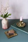 ふちが少し立ち上がった四角い真鍮のプレート。