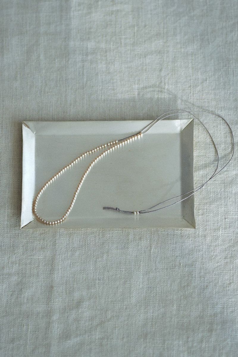 真鍮の表面にシルバーメッキ加工を施したシンプルなデザインのプレート。