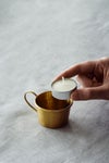 持ち手がついたティーカップ型のブラスのキャンドルホルダー