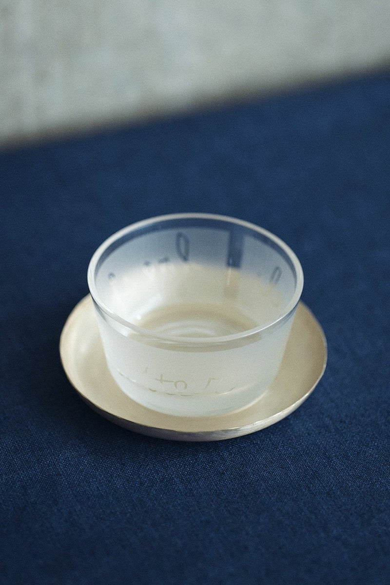 真鍮の表面にシルバーメッキ加工を施したシンプルなデザインのプレート。