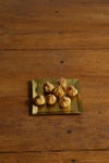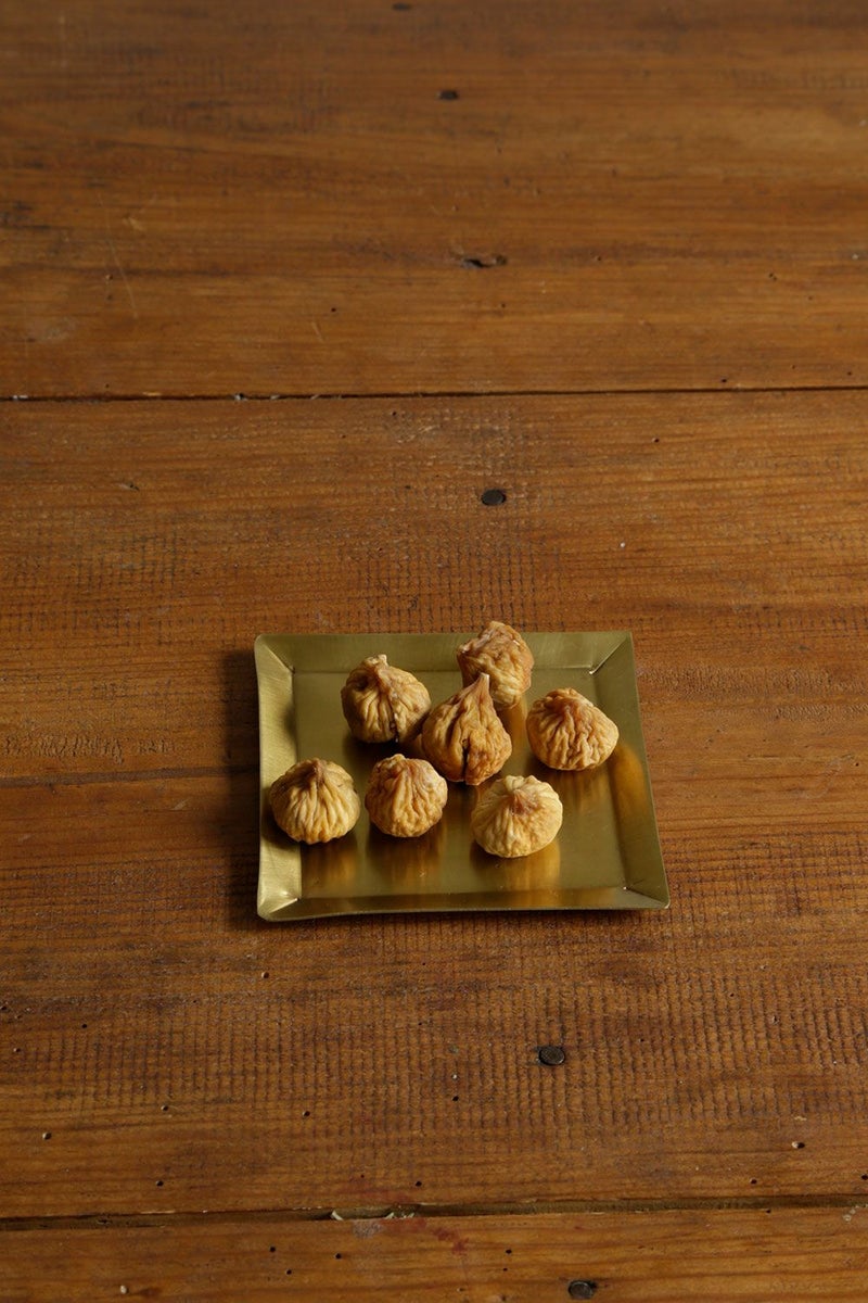 ふちが少し立ち上がった四角い真鍮のプレート。