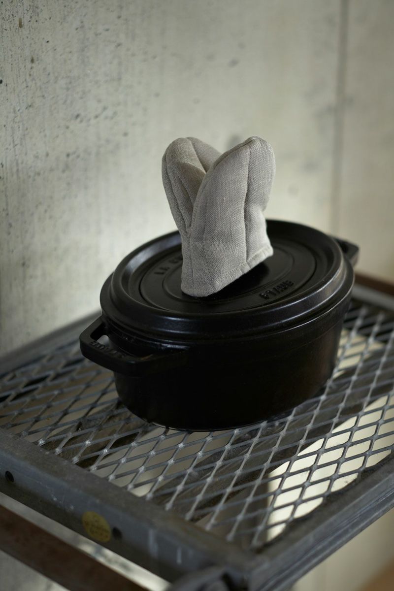 <コンパクトでさっとはめられる、リネンのオーブンミトン>
