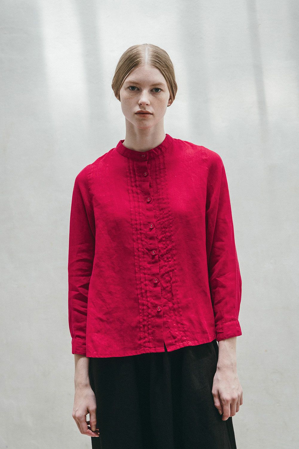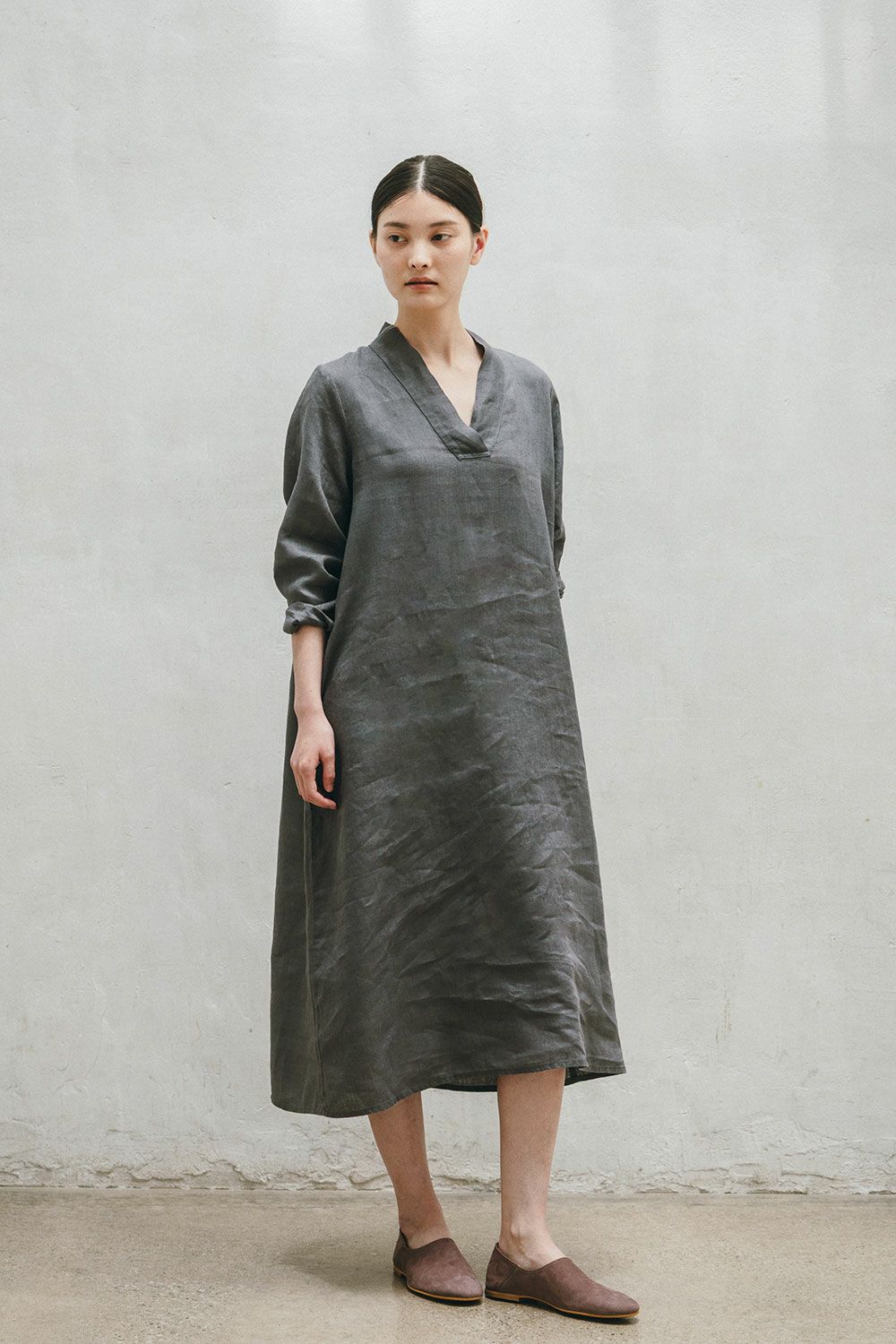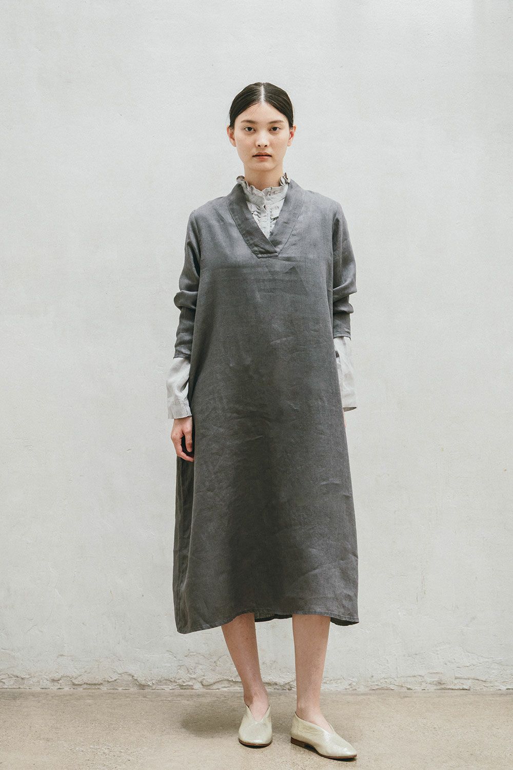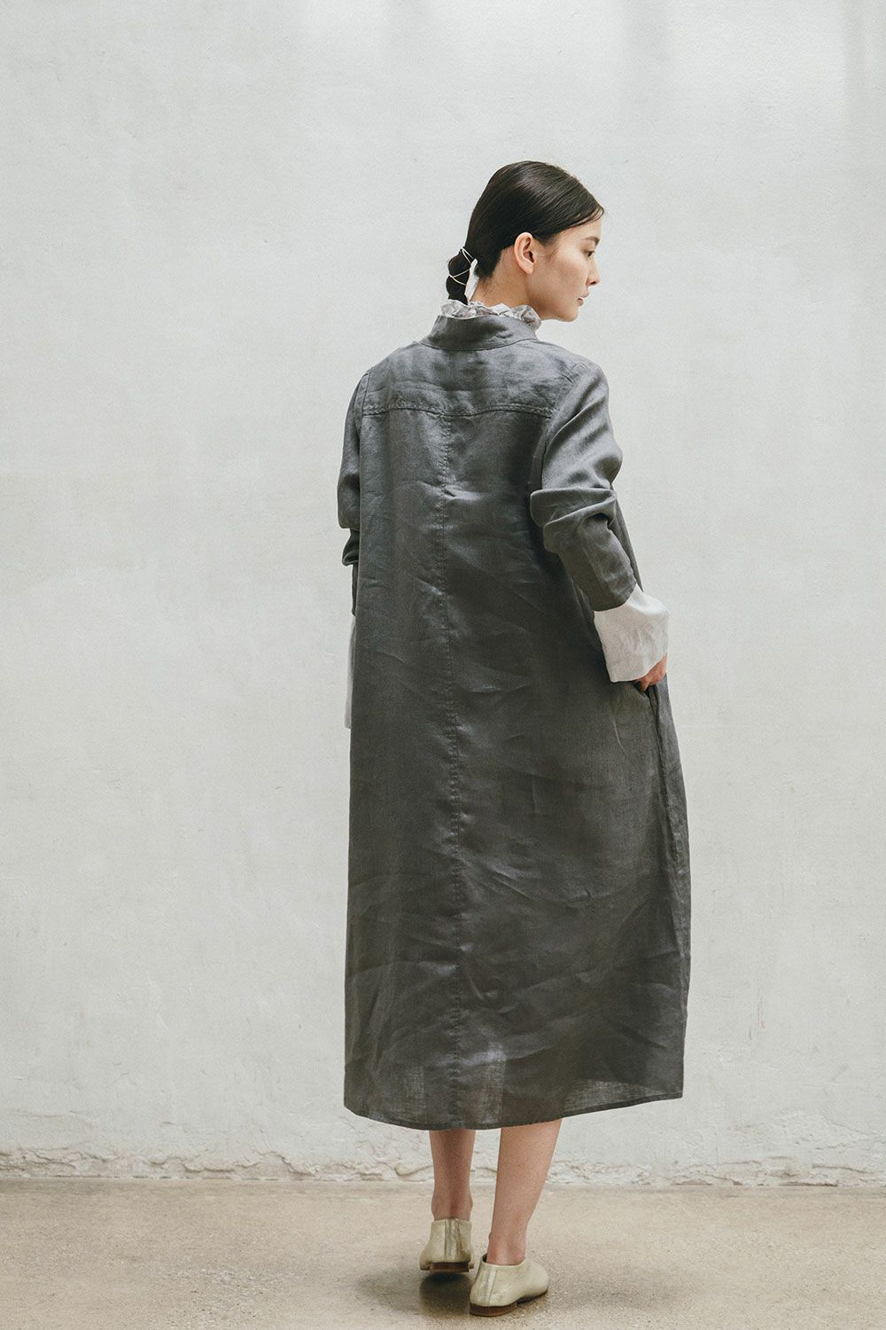 パールスラ スタンドカラーリボントップ アッシュグレイ