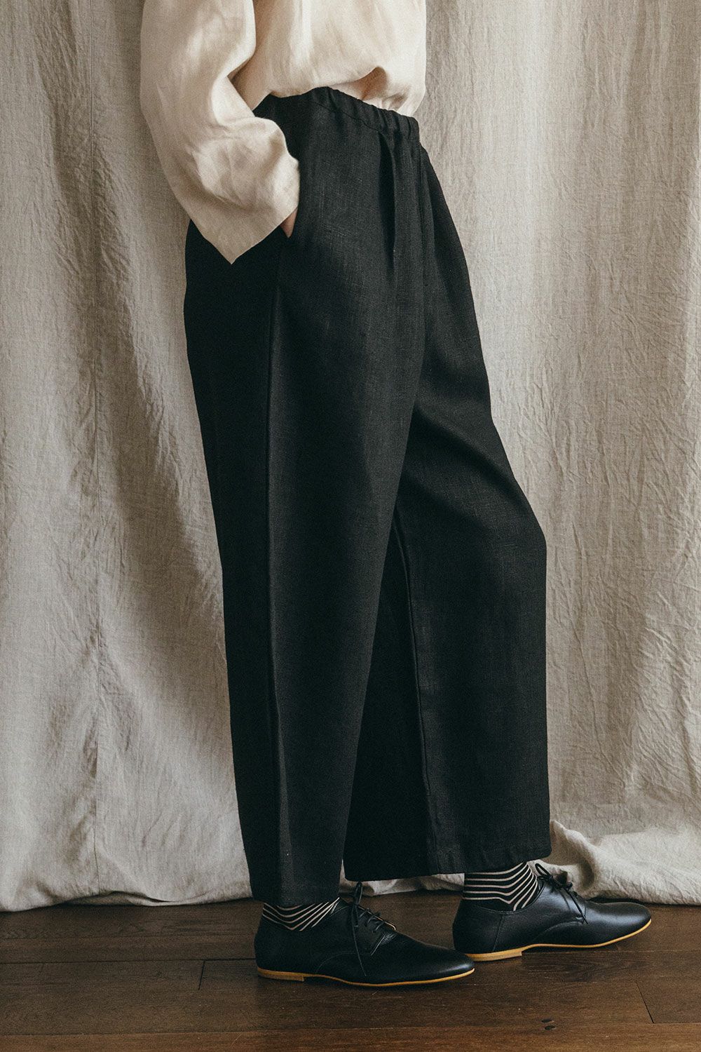 オワーズ リネン パンツ ブラック