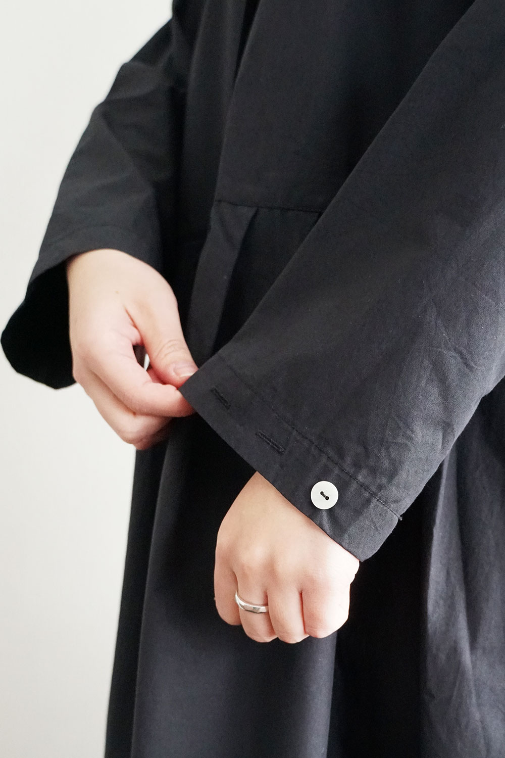 袖口にはボタンがついていて、閉じればきゅっとすぼまったシルエットにすることができます。