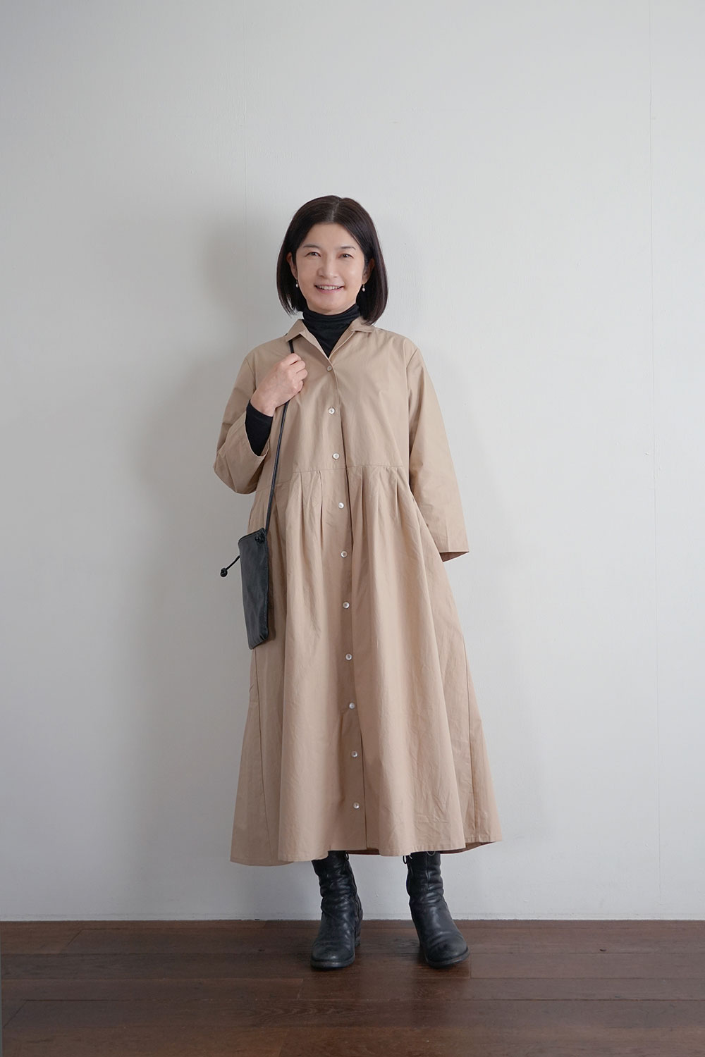 シルエットをきれいに保ちつつ、軽やかな着心地のワンピースに仕上げました。