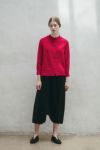 「一見、ひざ下スカートのようにも見えるパンツは、たっぷりしているので、部屋着にしたいくらいのリラックス感がありますが、見た目はおしゃれなのが嬉しい。個性的なシルエットなので、シンプルにTシャツやニットと合わせて着たいです。わたしがウエストで着るとふくらはぎの上、少し腰を落として履くと、ふくらはぎが隠せる丈です。 」