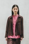 「リネン素材のジャケットは柔らかくて、小柄なわたしでも着られている感がなく、自然と馴染んでくれるのが嬉しいです。ボタンをしめてきちんと着るのもかわいいですが、袖をまくって襟をたてるとこなれた感じになります」