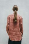 「バンドカラーがきちんと感を出してくれるシャツ。裾を外に出してカジュアルに着るのはもちろん、ウエストにインして、Aラインのスカートやボリュームのあるボトムスなどを合わせてもバランスよく着られそうです」