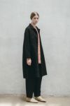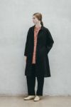 「リネンのコートって洗えるし、気楽に着れるのがいいですよね。ブラックもリネンだと重く見えなくて、軽やかに着られます。シンプルな形ですっきりとしたシルエットなので、仕事の時に着るのもよさそう。」