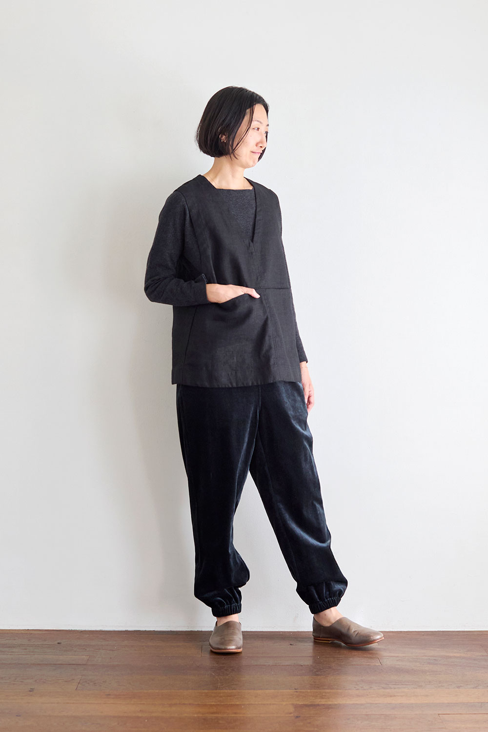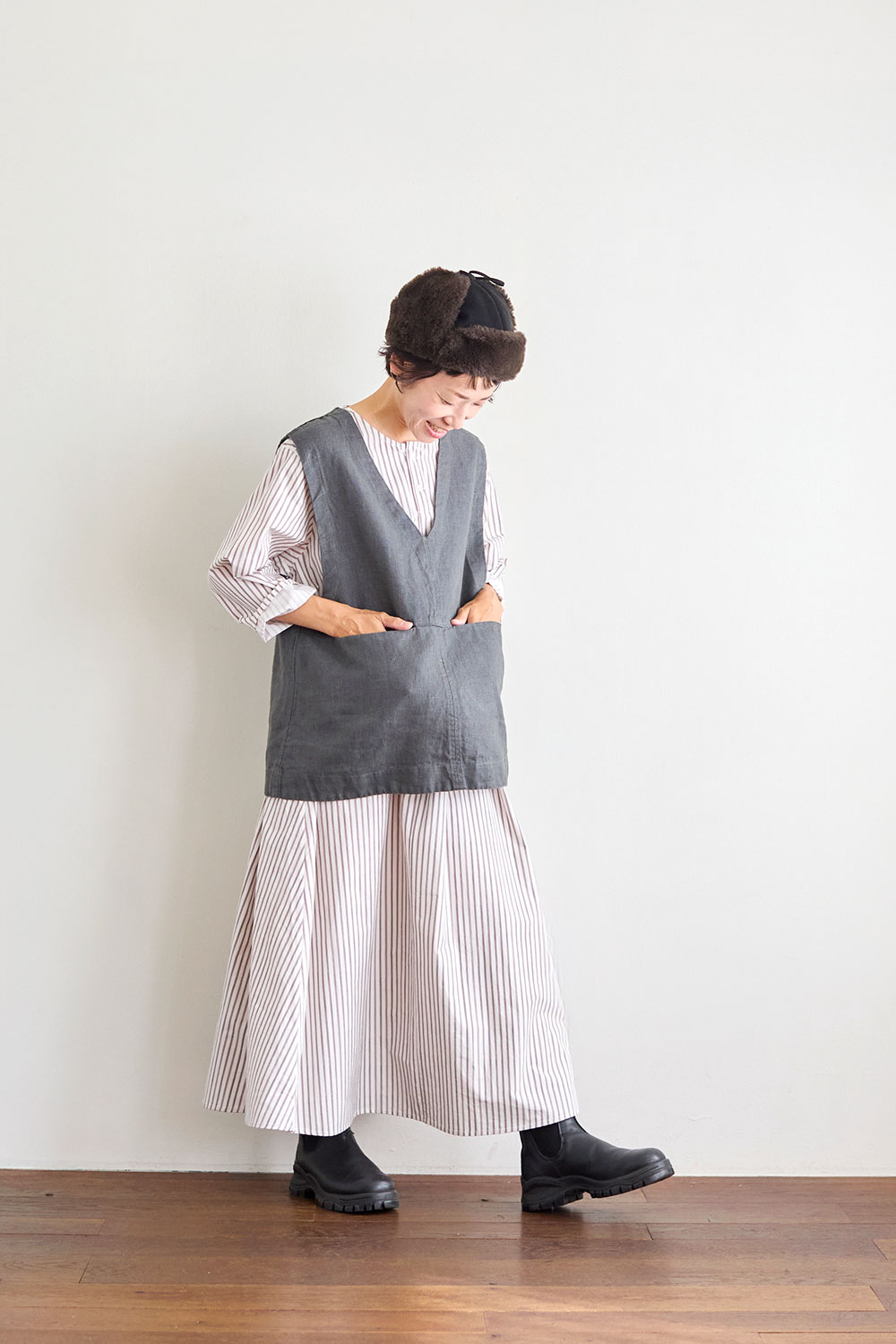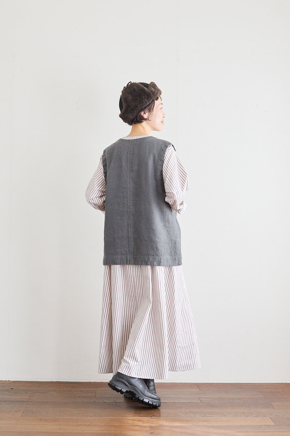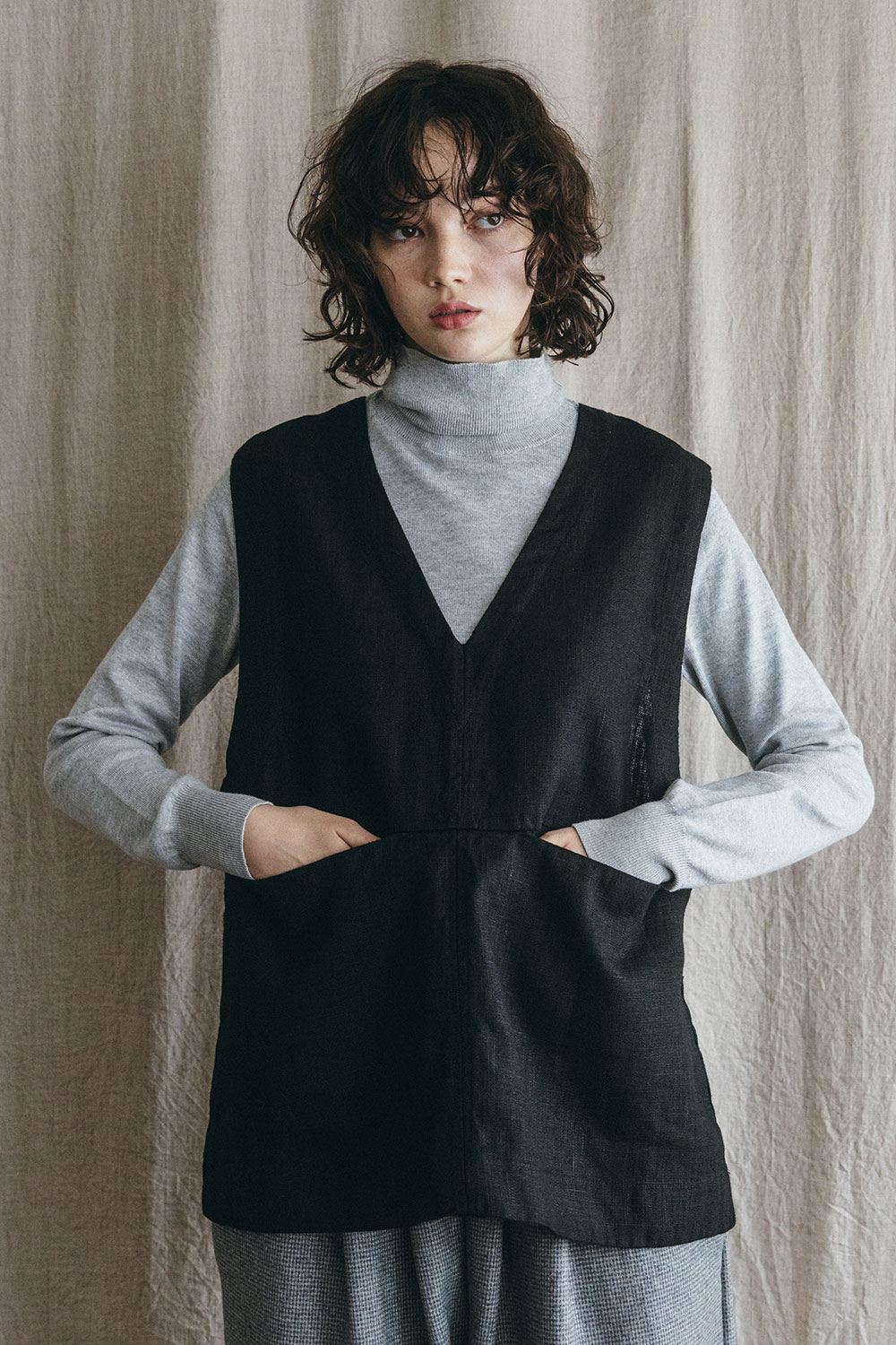 厚手のリネン生地で仕立てた、存在感のあるジレ。