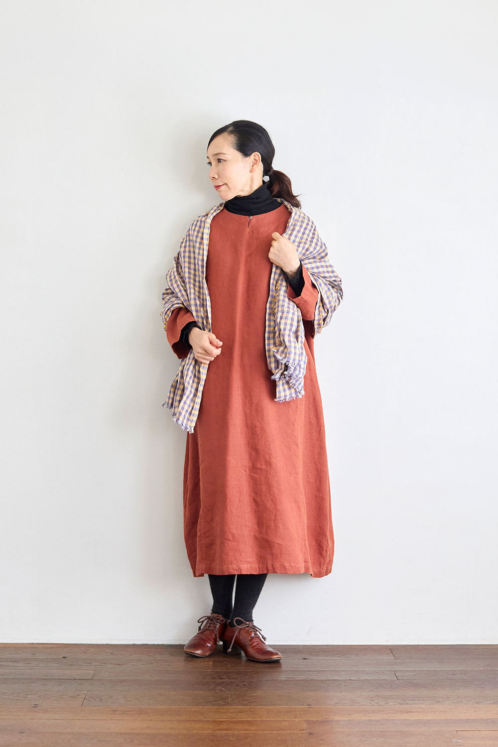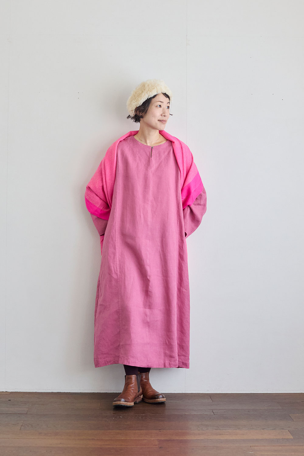 すとんと一枚で着るだけで様になる、ゆったりシルエットのワンピース。