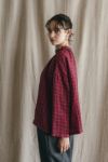 右:身長160㎝ 「襟元のデザインがとてもきれいで、アクセサリーなしでも十分映えます。着心地はラクなのに、きちんと感が出せるので、お仕事にも休日にも活躍しそうです。柄ものはシンプルにデニムに合わせてもサマになるのでコーディネートもらくちん。赤のチェックはやっぱり秋冬の気分を盛り上げてくれます!」