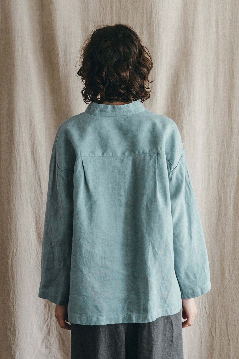 PARSLA STAND COLLAR RIBBON TOP CLAIR