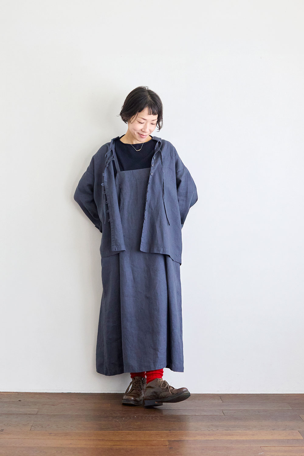ドロップショルダーで身幅にもゆとりがあり、リラックス感のある着心地で、前を開けて羽織りとして着るのもおすすめです。