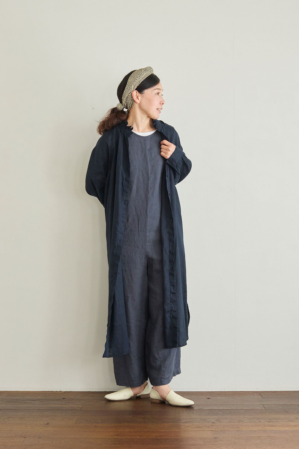 アリヤ ジャンプスーツの上に、軽い羽織として合わせてみました。
