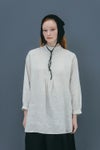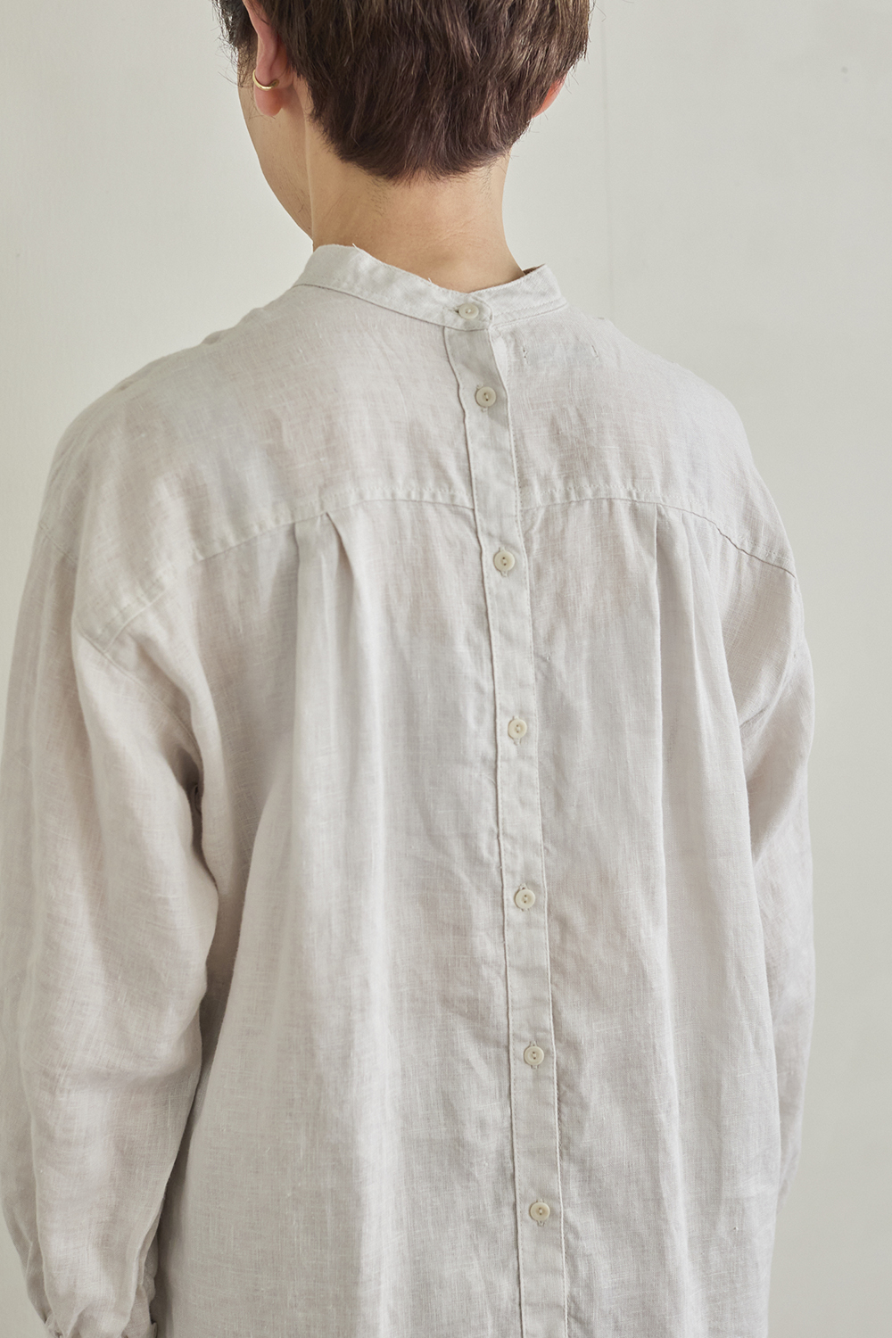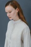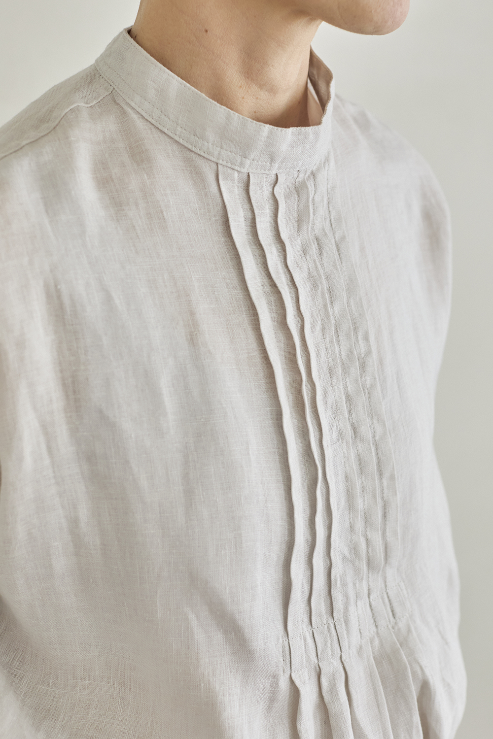 <さりげないディテールが映える、ピンタックチュニック>襟元に細やかなピンタックをあしらった、バンドカラーのチュニック。