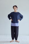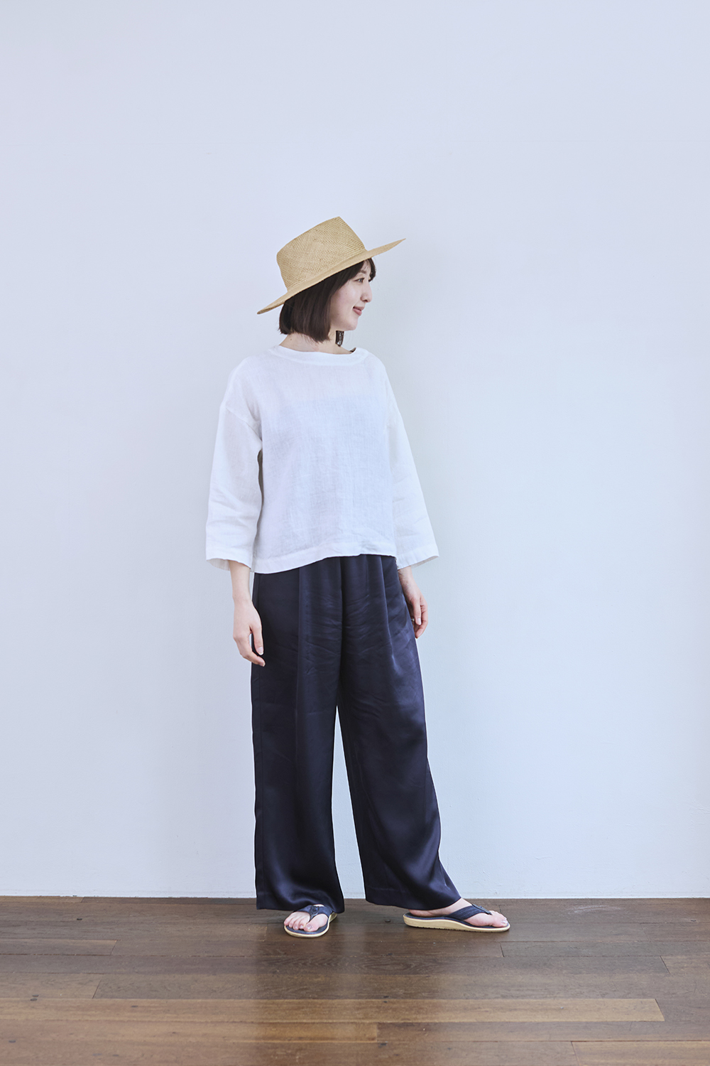 ドロップショルダーと肘が隠れる袖丈、ゆったりとした身幅でリラックス感のある着心地です。