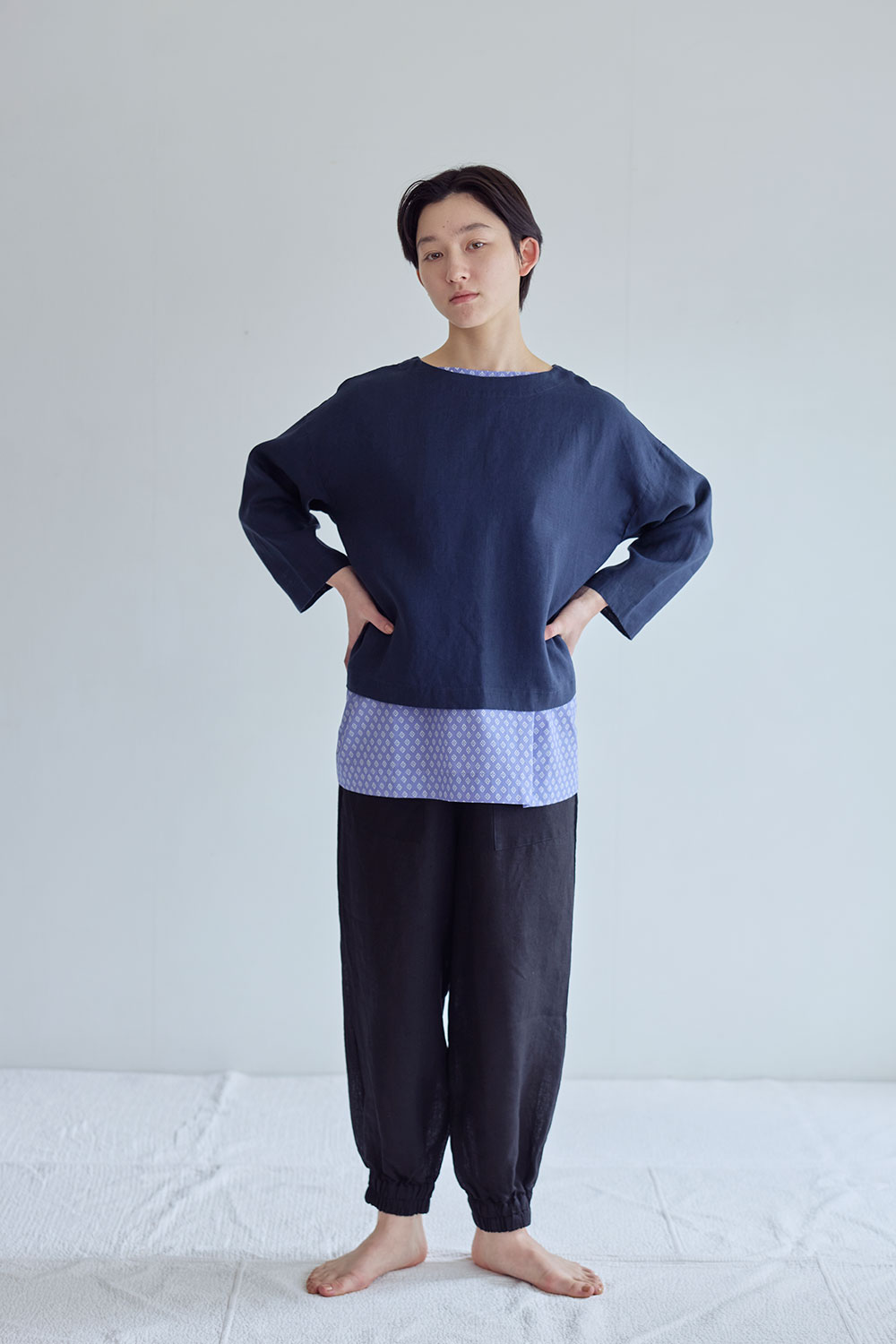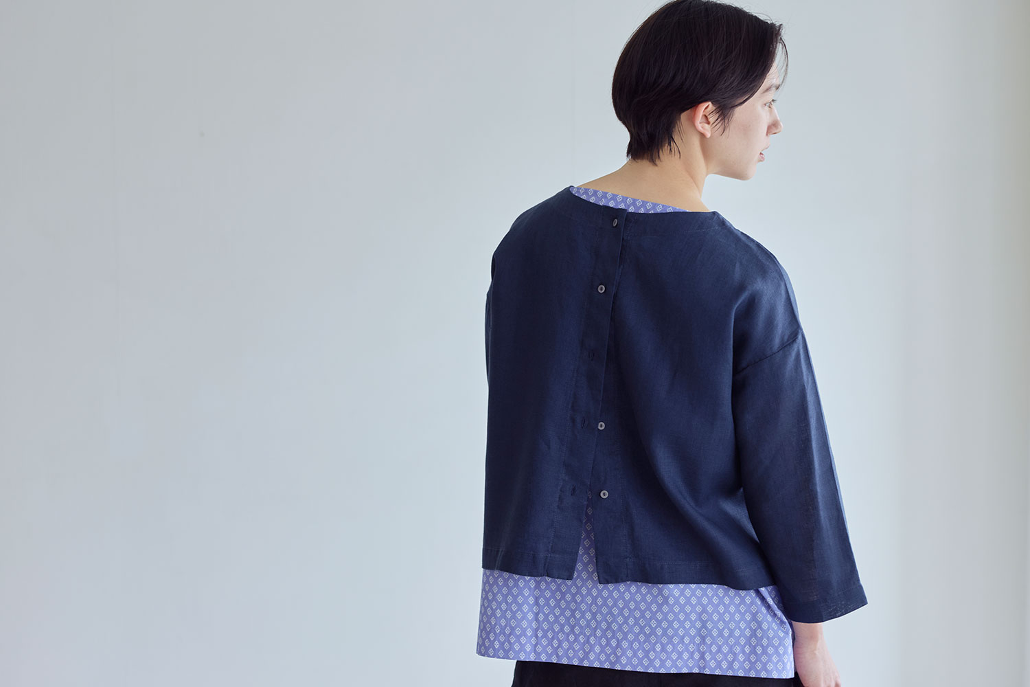 前後どちらでも着られる 2WAY 仕様のボックス型トップス。