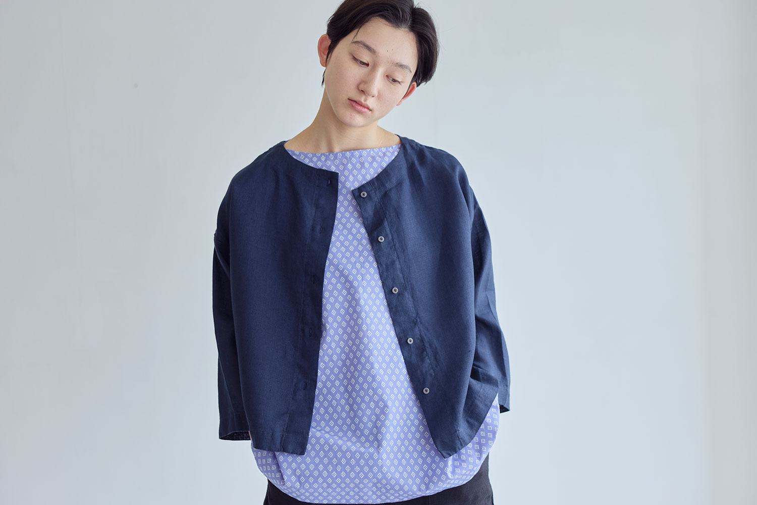 T シャツのようにさらりと 1 枚で着たり、ボタンを前にしてタンクトップやワンピースの上に羽織ったりと、着こなしの幅も広がります。