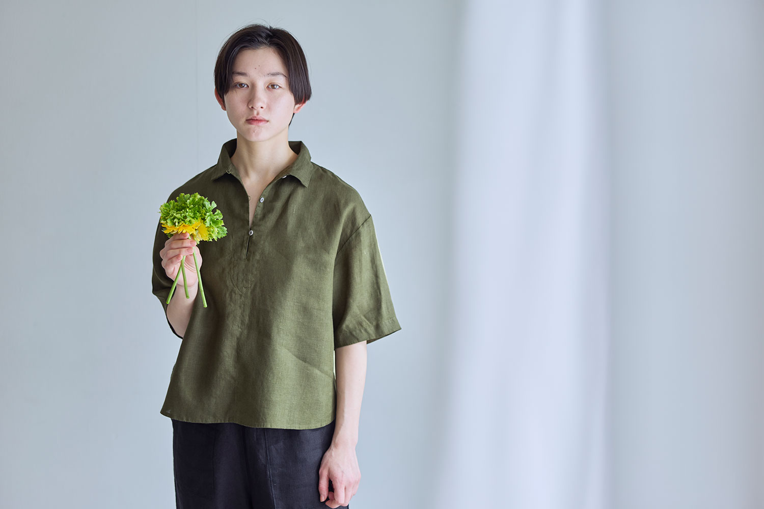 裾は前後差のあるラウンドヘムで軽やかに仕上げ、ゆったりとした身幅がリラックスした着心地を叶えます。