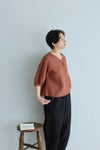 身長160㎝「ぽわんとした袖が、やわらかくかわいらしい印象の一枚です。肩はドロップショルダーで、袖のボリュームも気にならず、自然と馴染むバランスに。ほどよく開いたVネックなので、インナーをのぞかせて、少しカジュアルな雰囲気で着てみました」