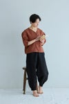 程よい厚みのリネン生地を使用し、トップスとしてはもちろん、ジャケット感覚で羽織りとしても活躍します。
