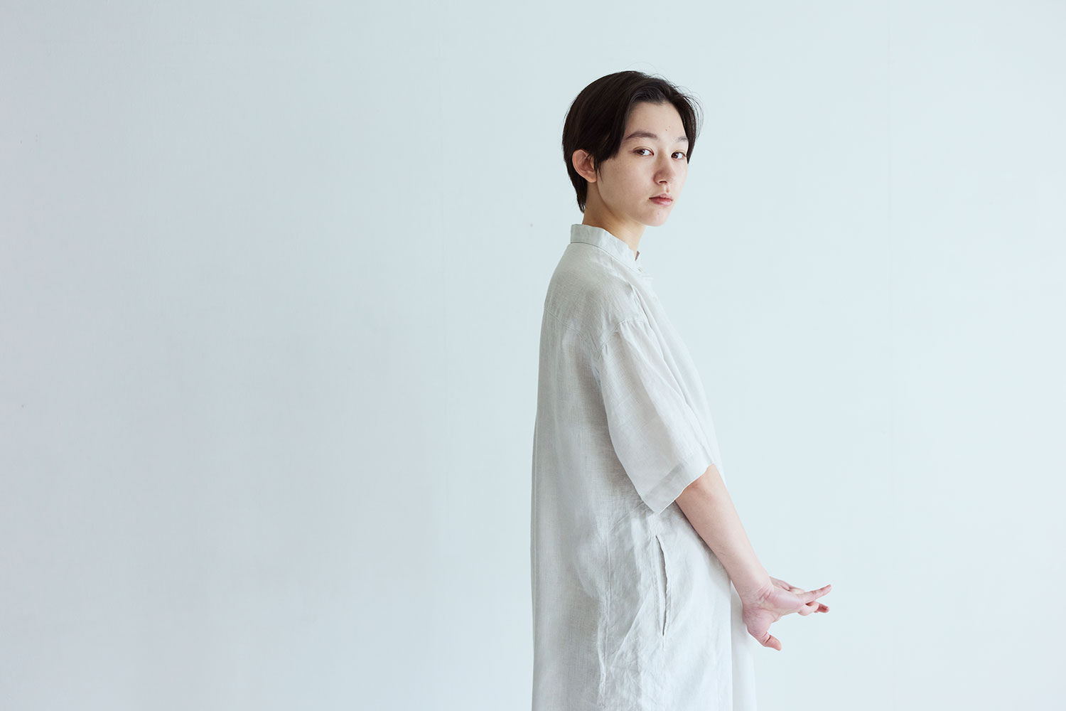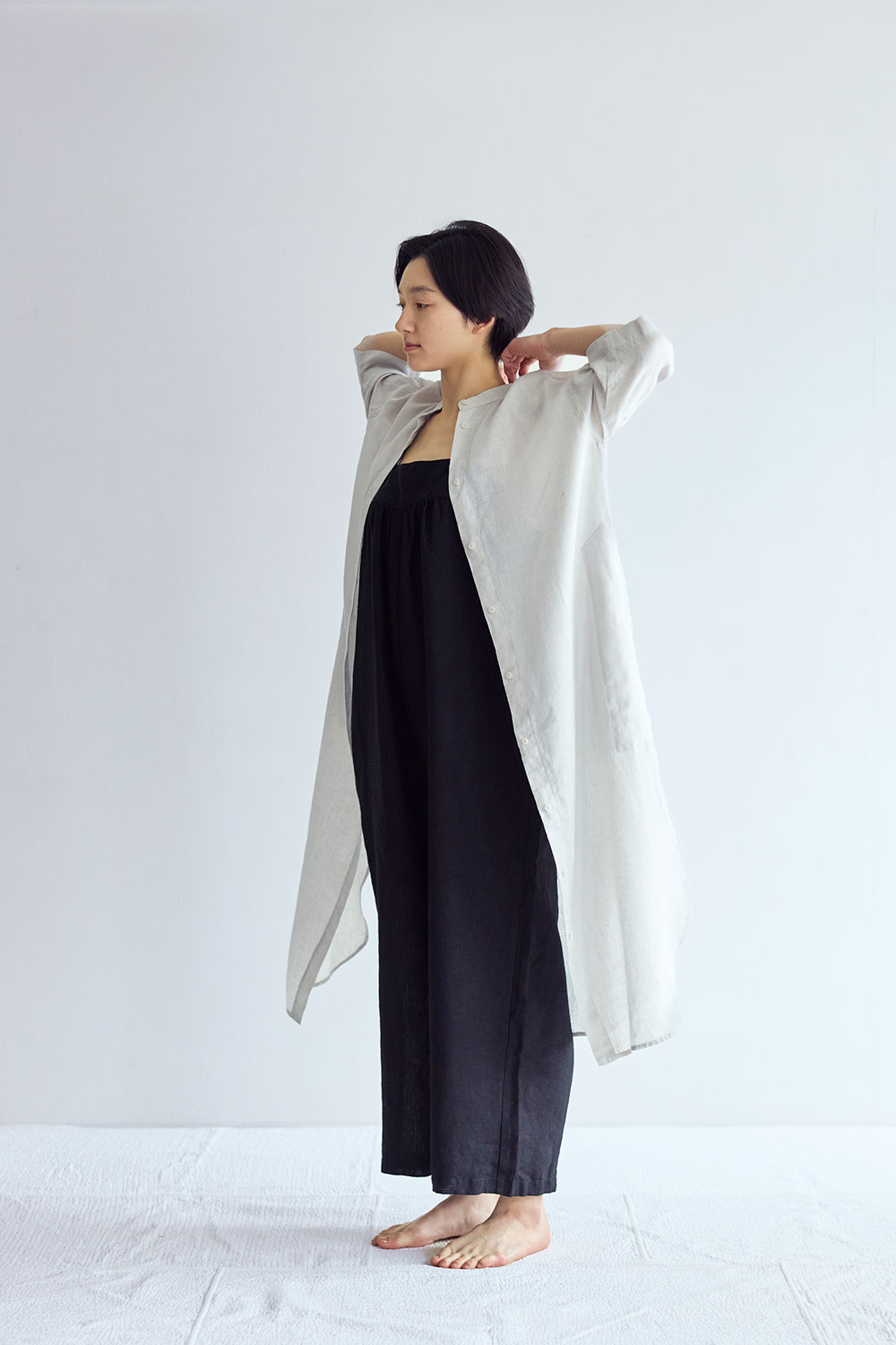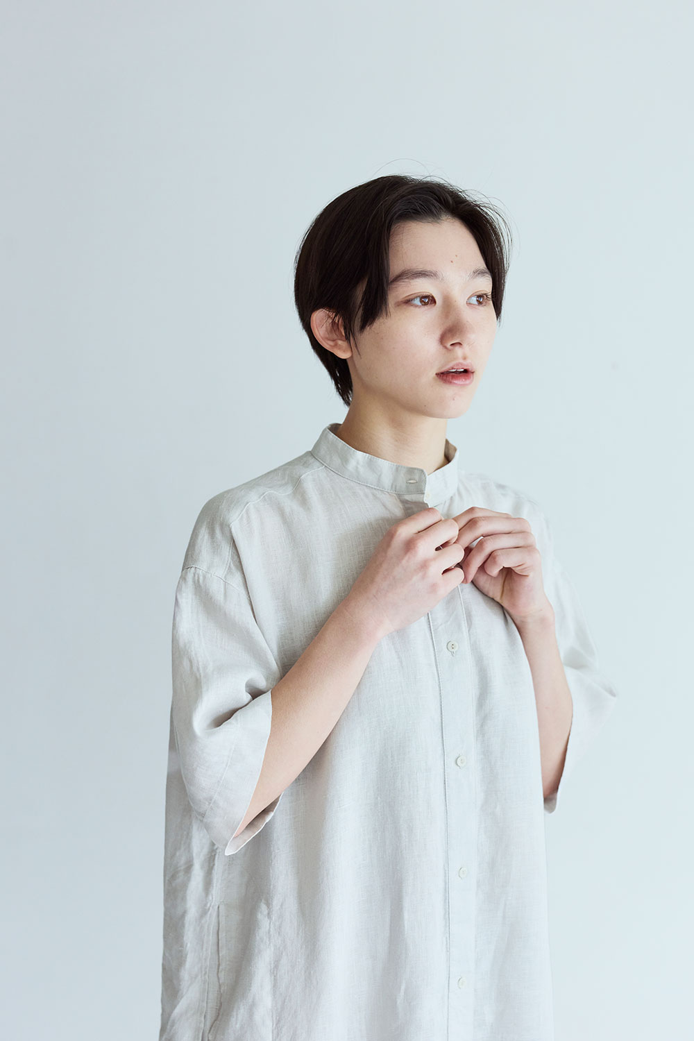 深めのラウンドヘムで軽やかに仕上げ、一枚ではもちろん、パンツとのレイヤードや羽織りとしても活躍します。