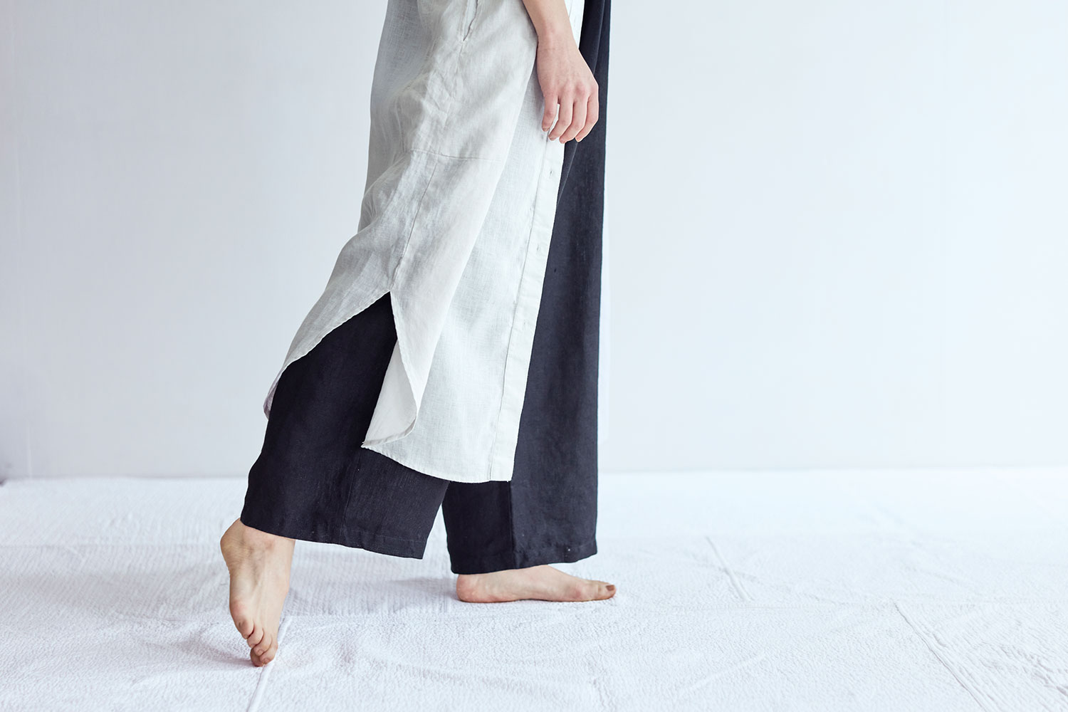 サイドにはインドのクルタシャツに用いられる仕様を取り入れたポケットを配置。