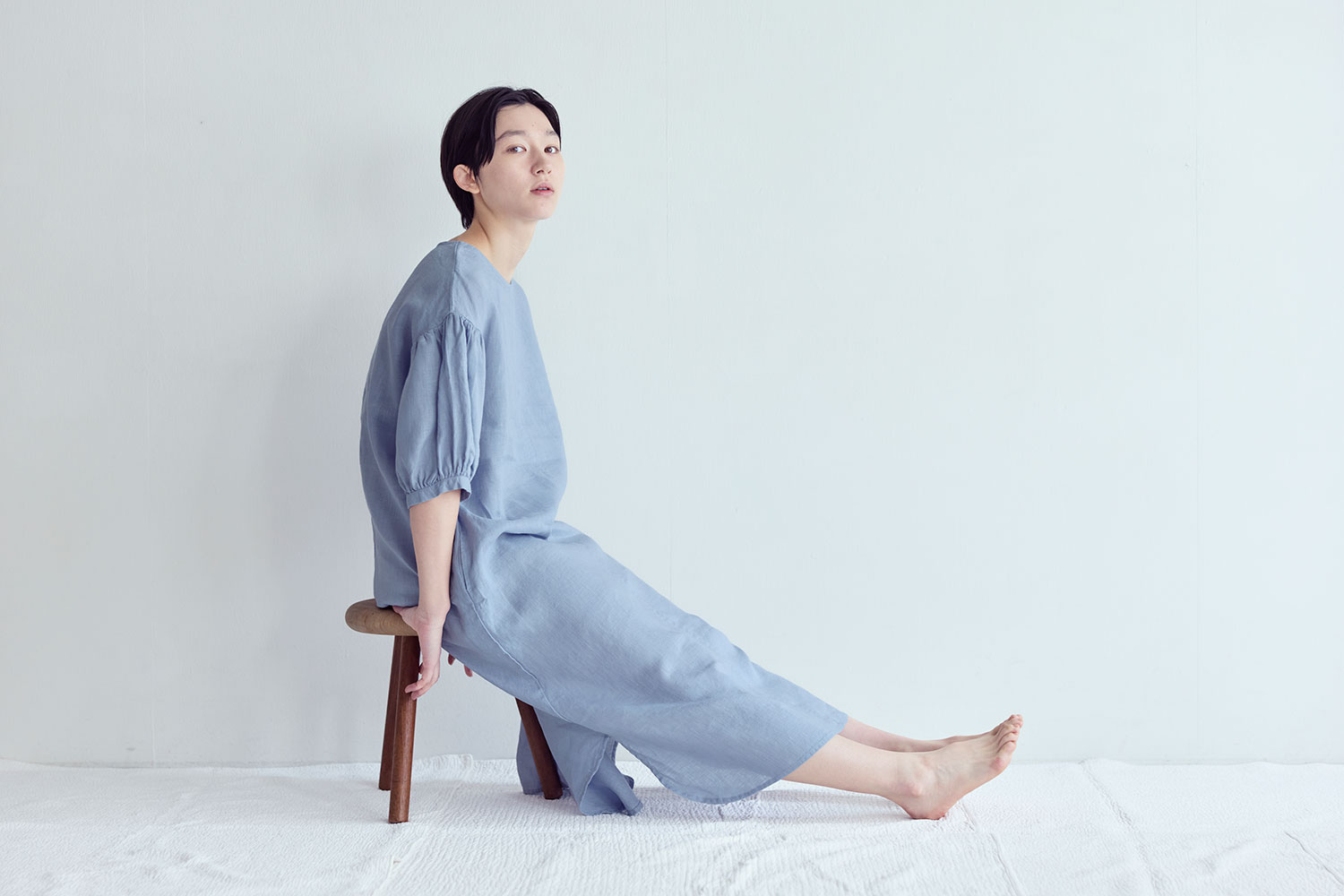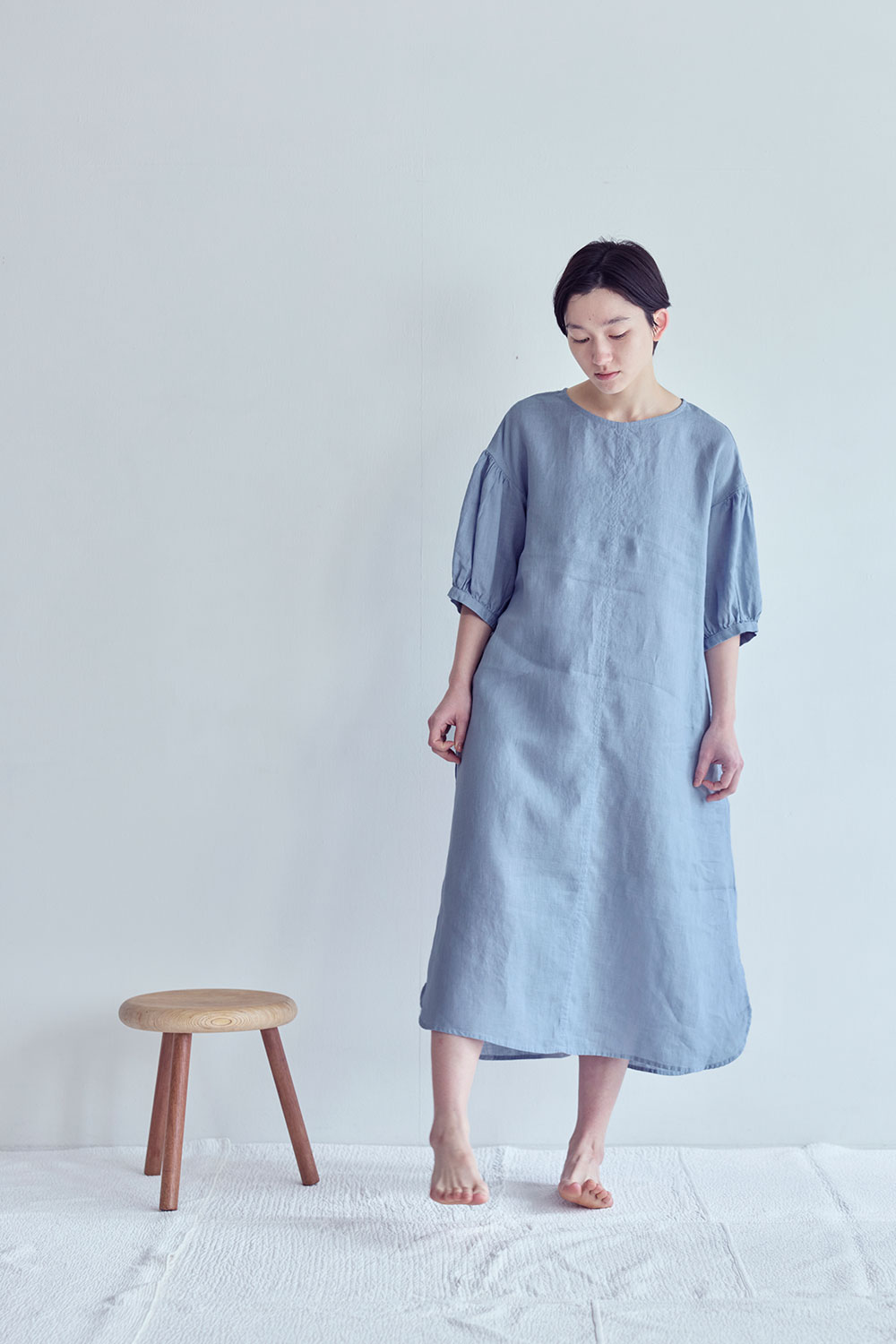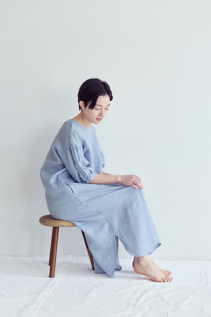 シンプルな身頃に、ボリュームのあるパフスリーブを合わせたワンピース。