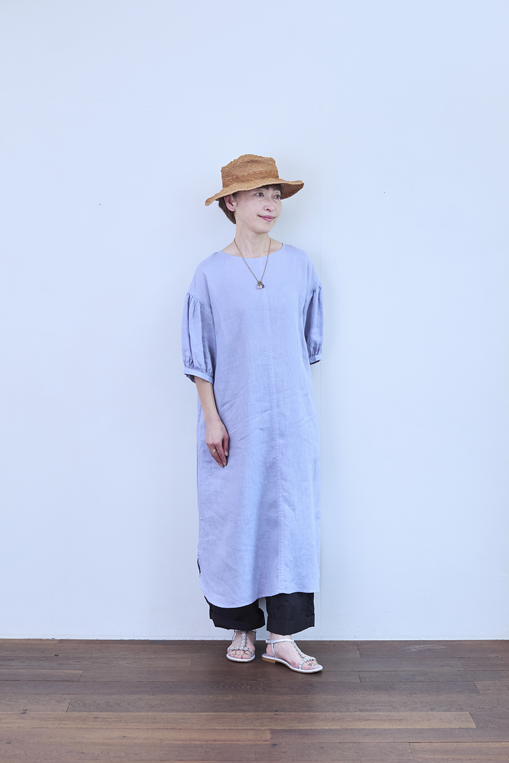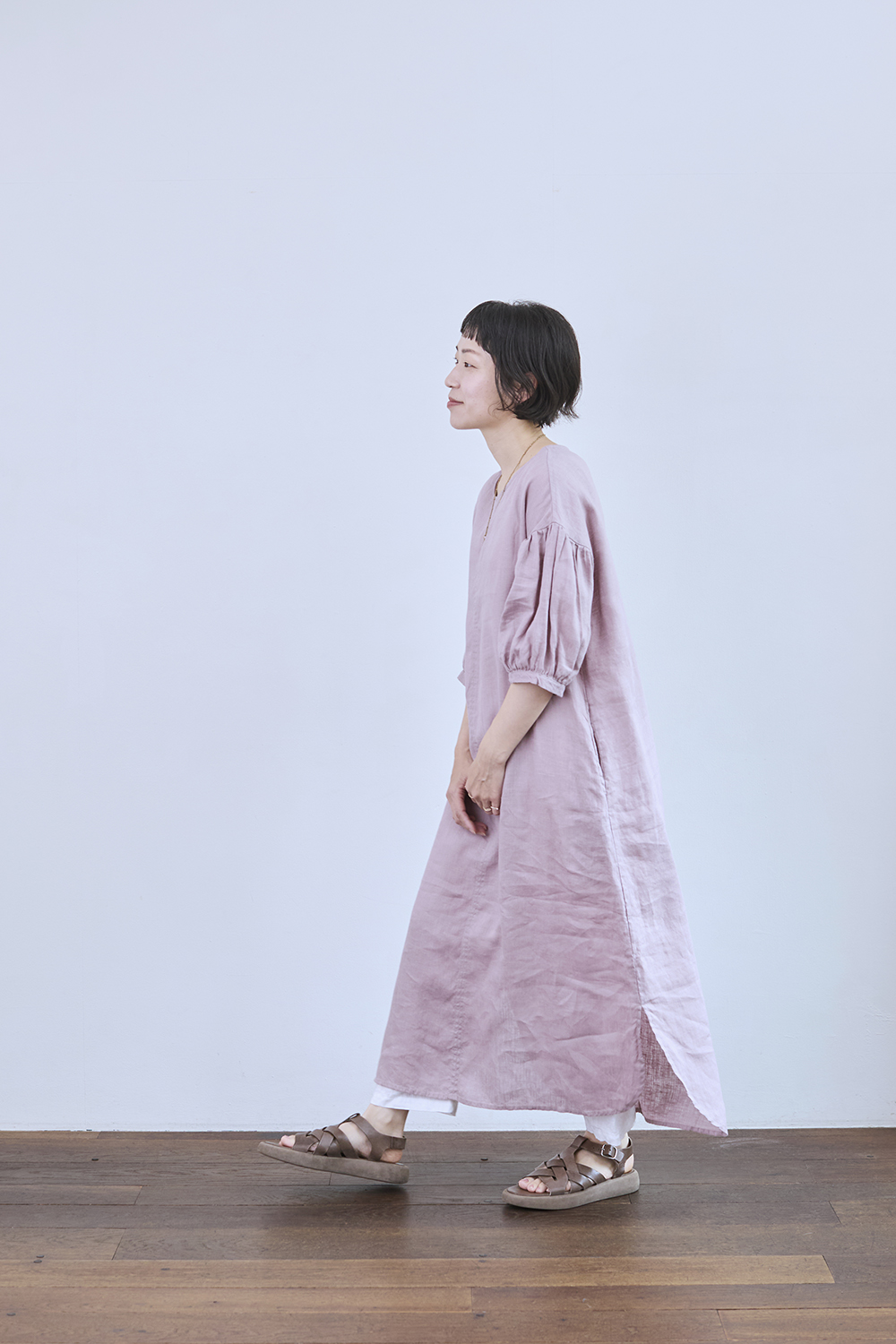 右:身長153㎝「ゆったりとした着心地のワンピースで、リラックス感があります。1枚でコーディーネートが完成するかわいいデザインなので、夏の暑い日につい手に取ってしまう1枚になりそう。ローズカラーはくすみピンクなので、普段ピンクを着ない方にも挑戦しやすいカラーだと思います!」