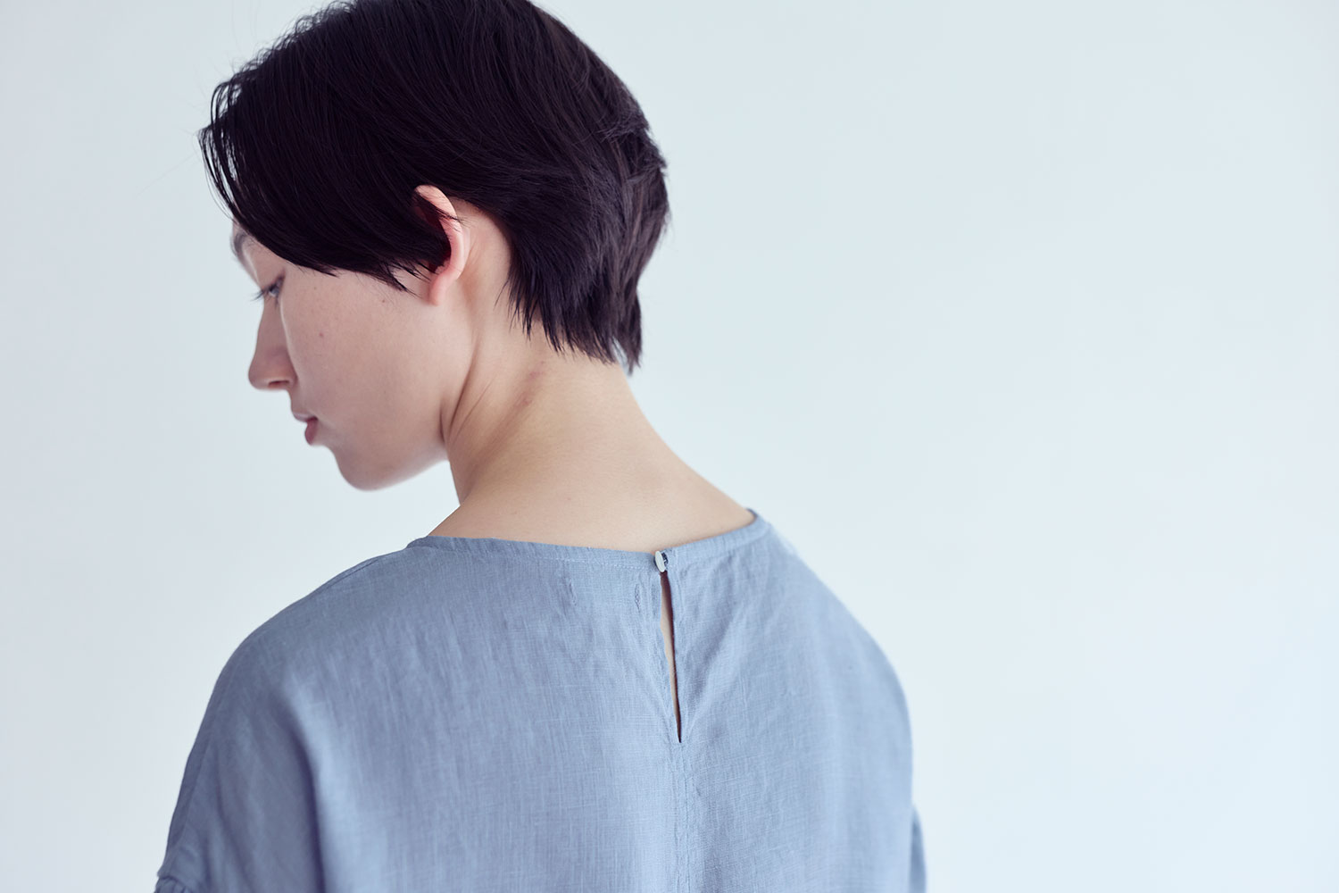 後ろはティアドロップあきになっており、後ろ姿にほどよい抜け感を添えています。